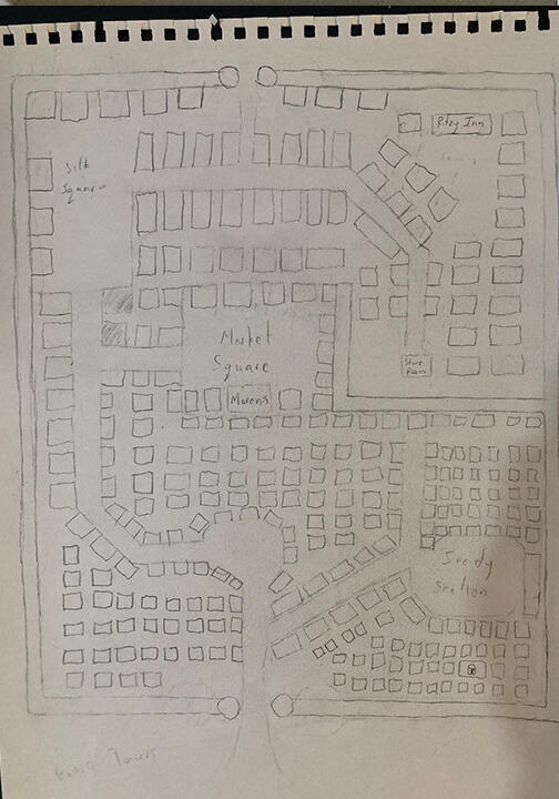 The first step was to write the actual story and have the prose that the entire project would gravitate around finished. Once that was complete, I created margins for the pages that would allow enough space for the art to breathe while the text would remain in the center of the page. Then, I was able to determine how many pages of art would be required and basically storyboarded the project with descriptive explanations of what would be happening on each page. I did character sketches and rough sketches of the pages, before creating the actual art in Illustrator. Midway between doing the finalized art, I recorded the music for the QR codes, wrote the side story for the app, wrote out the glossary of terms and drew out the map draft. Once the art was finished, I exported the PNG files and put everything together in InDesign where I had greater control over the text and then finally exported the PDF eBook.